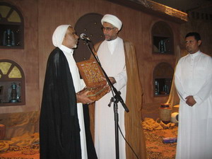 سماحة الشيخ عبدالله اليوسف يسلم الملا أحمد البطران درع التكريم بالحلة- القطيف